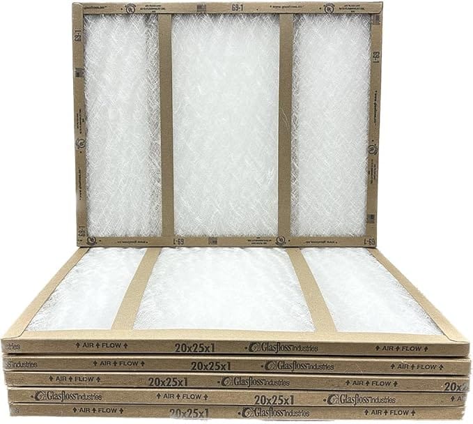 Glasfloss GDS 20x25x1 disposable, double-strut furnace filters are excellent for protecting your heating and cooling system and indoor air. These air filters offer a double-strut design that provides durability and a 10% greater open surface area than traditional fiberglass filters. The air filter frame is constructed of heavy-duty craft board that the fiberglass media is bonded to.