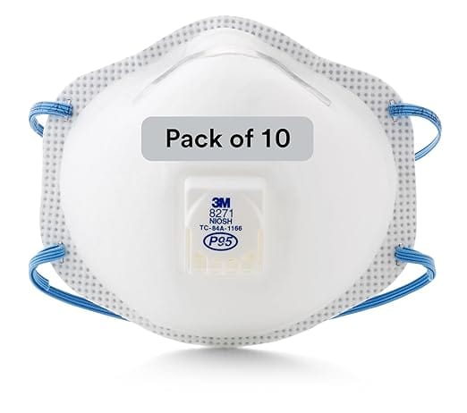 3M Particulate Respirator 8271, P95, Pack of 10, NIOSH APPROVED, Cool Flow Exhalation Valve, Braided Headband, Adjustable M-noseclip, Disposable General Purpose for Dust and other Particles