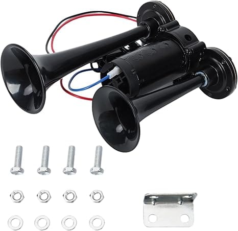 - [Easy to Install]: Our train horn kit is very easy to install. You just need to connect the horn wire on the car and the two wires from the air horn, and it will work normally Positive to positive, negative to negative(The installation instructions for the product are attached to our products, and you can install them by checking the instructions).