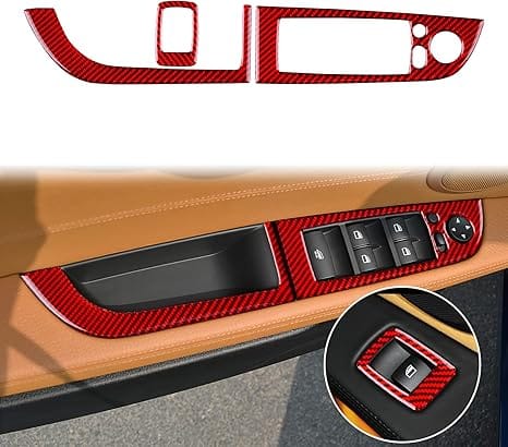 Carbon Fiber, for BMW, Car Window Lift Switch Button Panel Frame Cover Trim Sticker for BMW Z4 Roadster E89 2009 2010 2011 2012 2013 2014 2015 2016 2017, Interior Accessories, Red