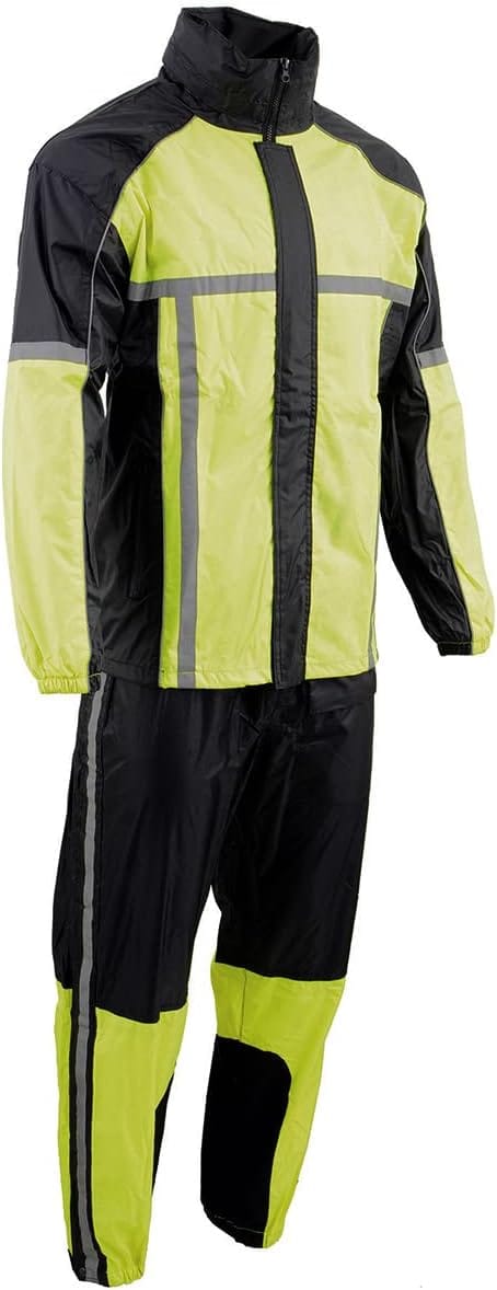 Milwaukee Leather MPM9510 Men’s Black Water-Resistant Motorcycle Rain Suit with Hi Vis Reflective Tape