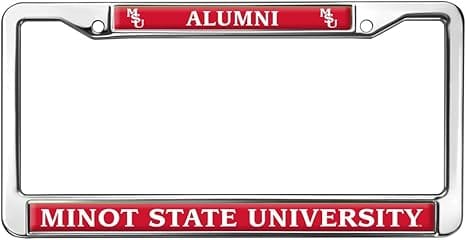 About The Product: Your license plate is for identifying your vehicle as unique, so why shouldn’t your license plate frame do the same? Show off your one-of-a-kind sense of style with one of our license plate frames! These awesome frames are made of a durable metal, and have the design shown printed directly onto the front. The ink is UV and water-resistant, so no need to worry about fading or smearing. This frame features two standard mounting holes on the top for a stable hold, as well as cut-out corners to avoid covering up those all-important state registration stickers. The frame is 12.3″ x 6.3″ in size, and will fit all North American license plates. About The Design: Minot State University is a public university in Minot, North Dakota. Founded in 1913 as a normal school, Minot State University is the third-largest university in North Dakota, offering undergraduate and graduate degree programs. Show your support with this official Minot State University product!